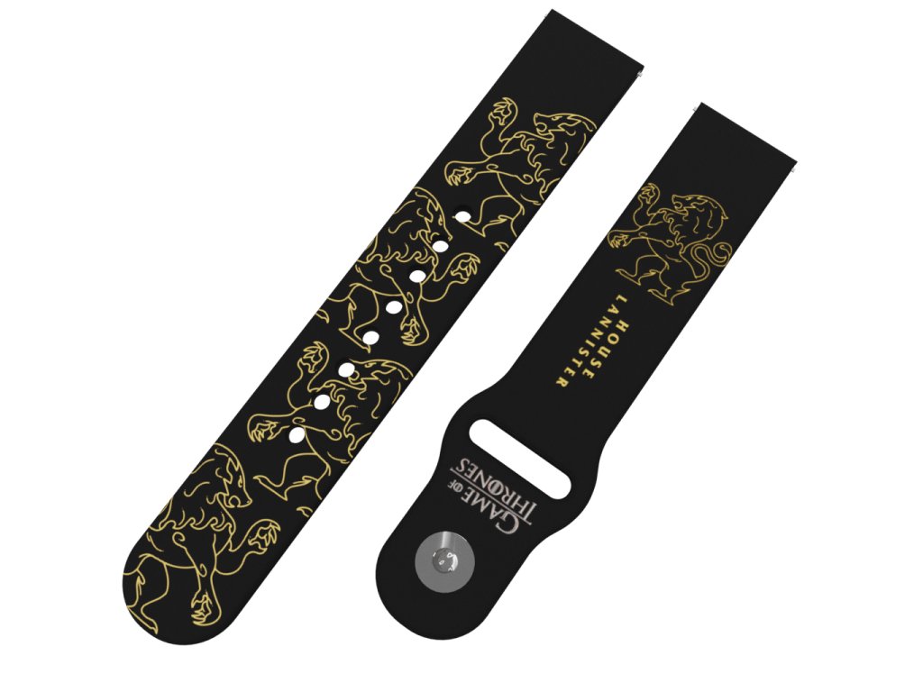 Černý náhradní řemínek s potiskem ikonických lvů rodu Lannisterů z Game of Thrones. Ideální pro fanoušky, kteří touží po originálním a stylovém doplňku. -Hear me Roar-