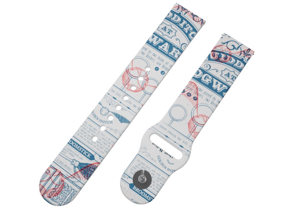Bílý náhradní řemínek pro chytré hodinky s potiskem herních prvků ze hry Famfrpál. Pro milovníky kouzelnického světa Harryho Pottera.