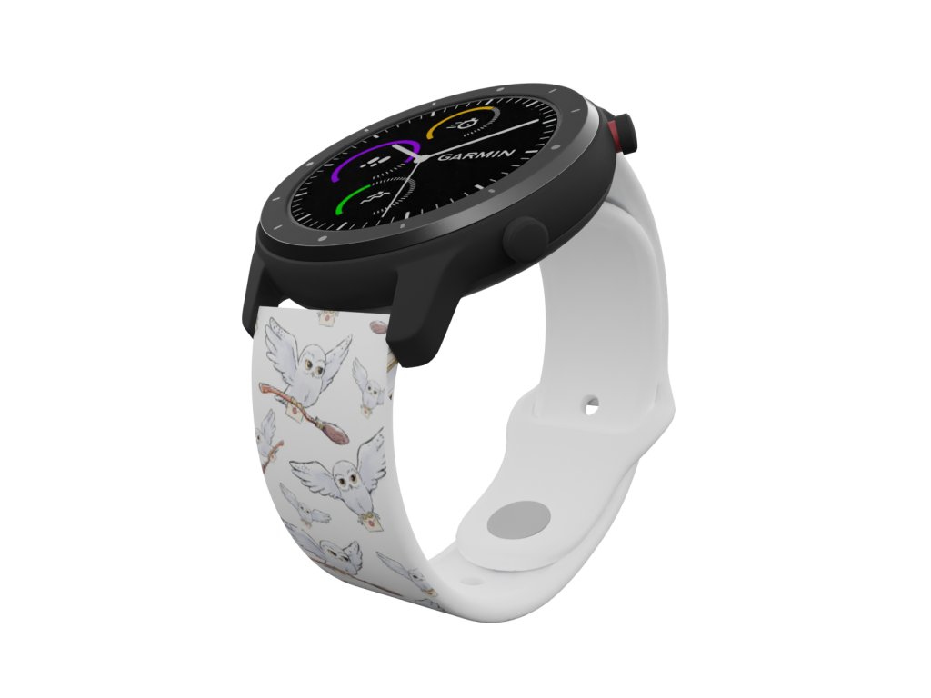 Bílý náhradní řemínek pro chytré hodinky s potiskem sovy