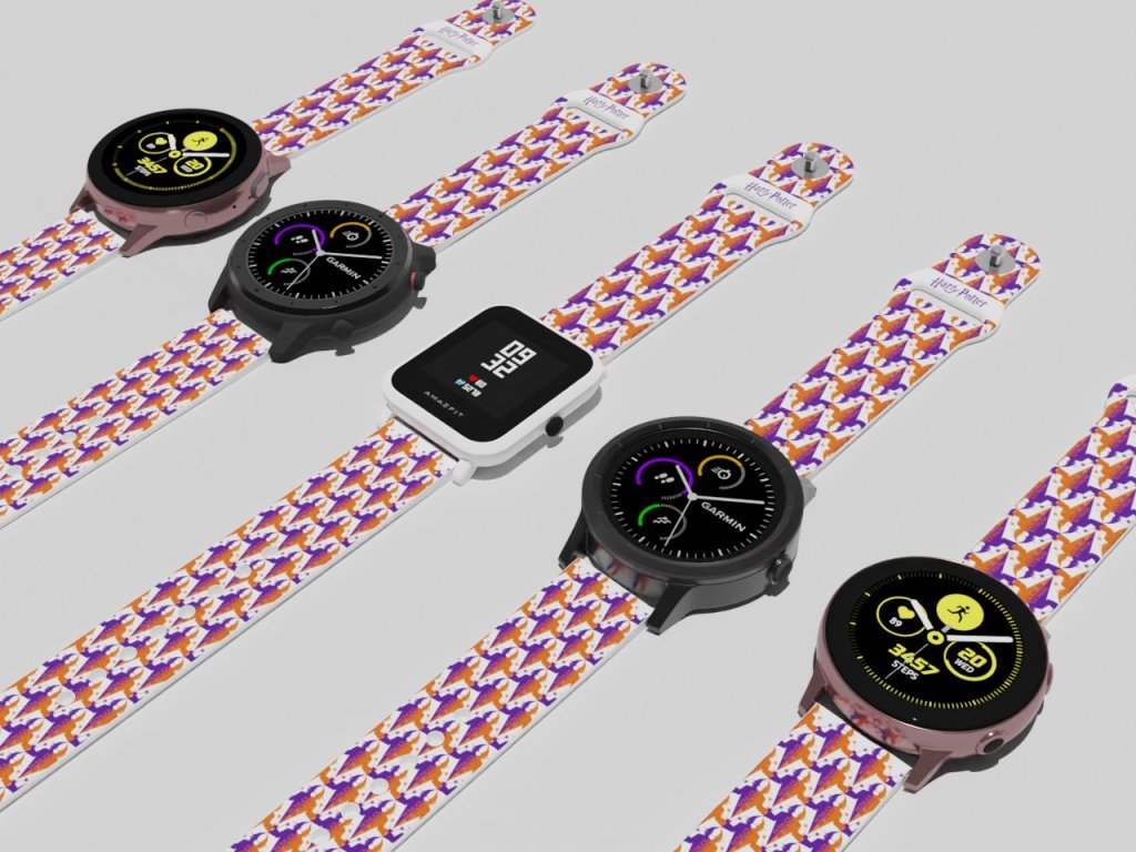 Bílý náhradní řemínek pro chytré hodinky s barevným potiskem kouzelnických kejklí z Harryho Pottera