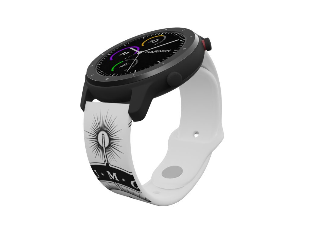 Bílý náhradní řemínek s černou grafikou lumos. Rozsviťte světlo na špičce své hůlky