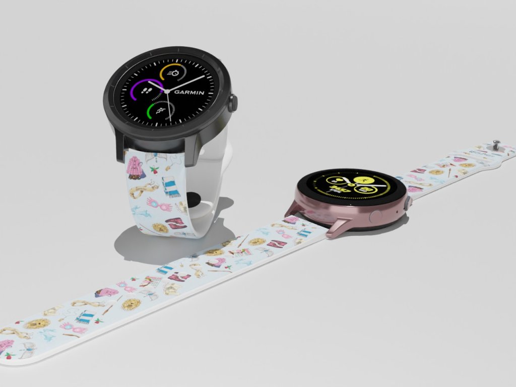 Bílý náhradní řemínek pro chytré hodinky s barevným potiskem předmětů