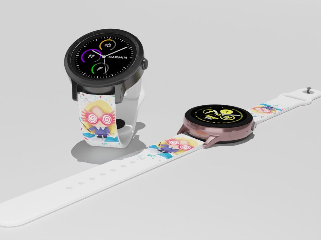 Bílý náhradní řemínek pro chytré hodinky s barevným potiskem postavy