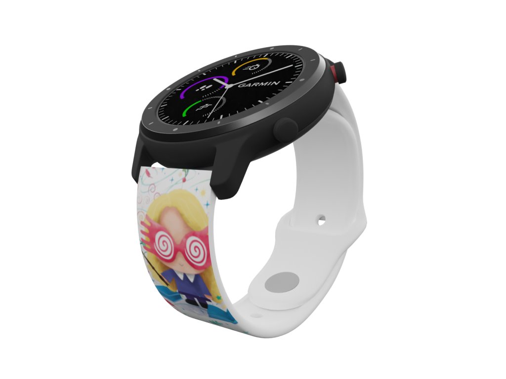 Bílý náhradní řemínek pro chytré hodinky s barevným potiskem postavy Lenky Láskorádové. Vítejte v kouzelnickém světě Harryho Pottera.