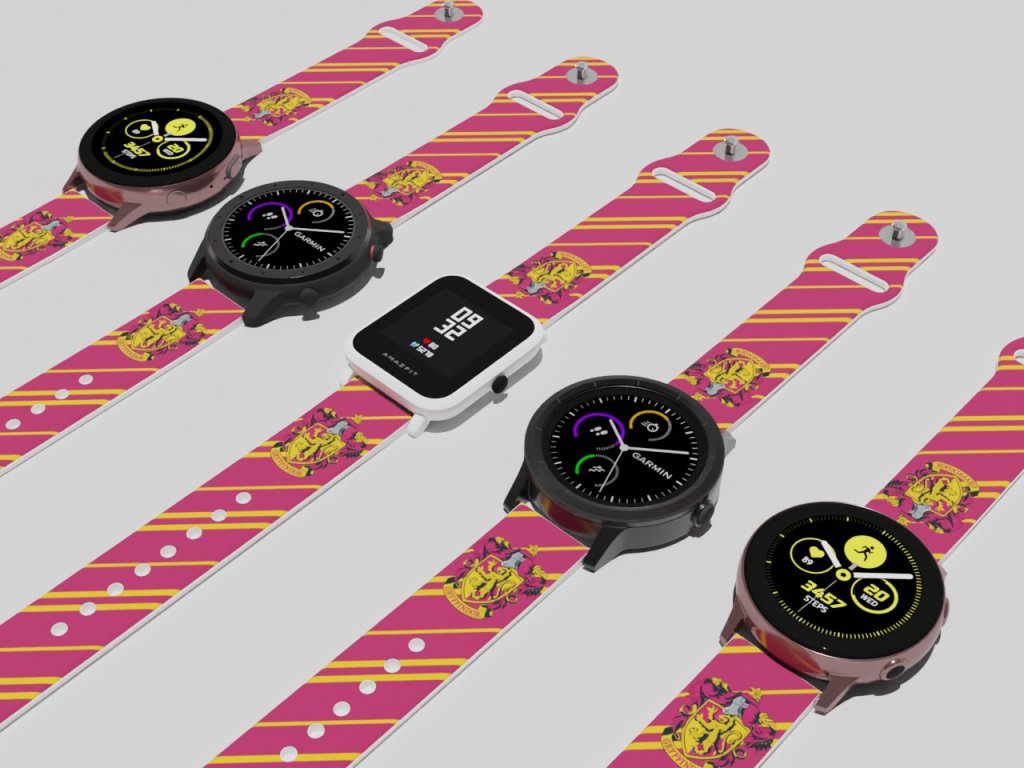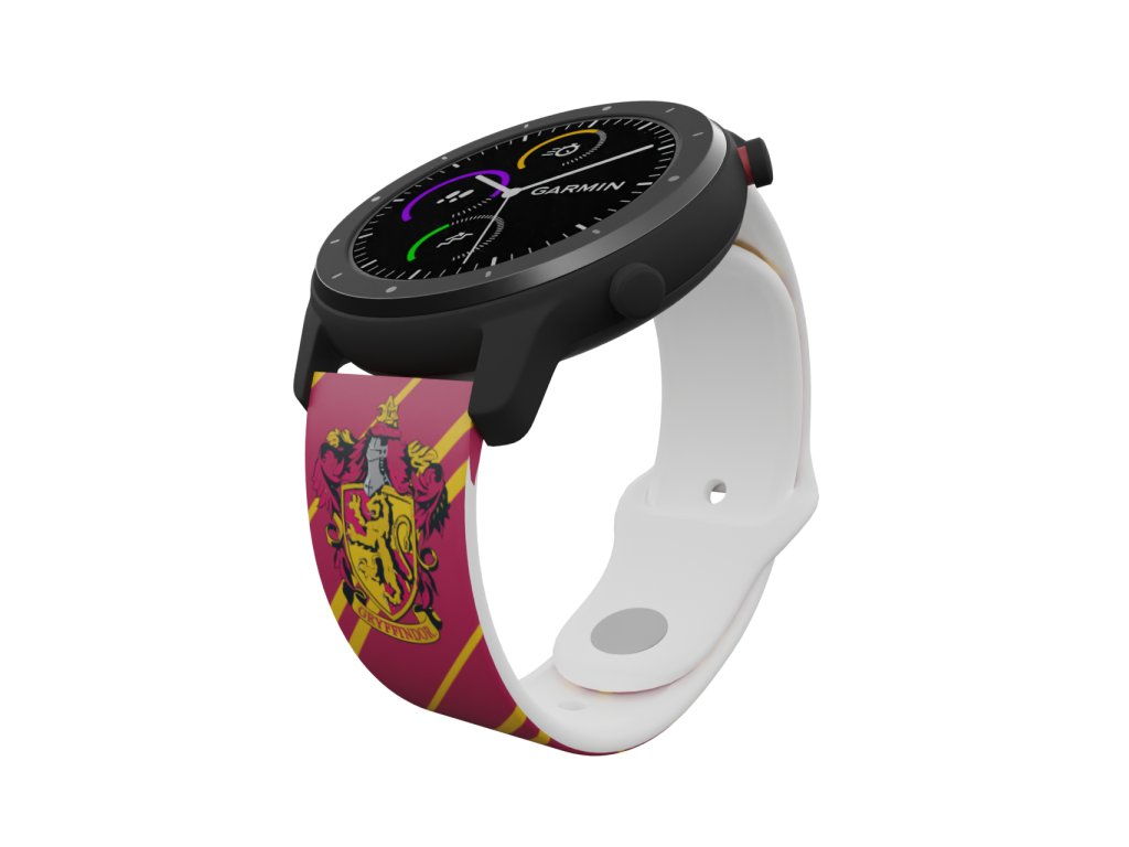 Bílý náhradní řemínek pro chytré hodinky s celoplošným potiskem ve stylu kravaty Nebelvírské koleje.