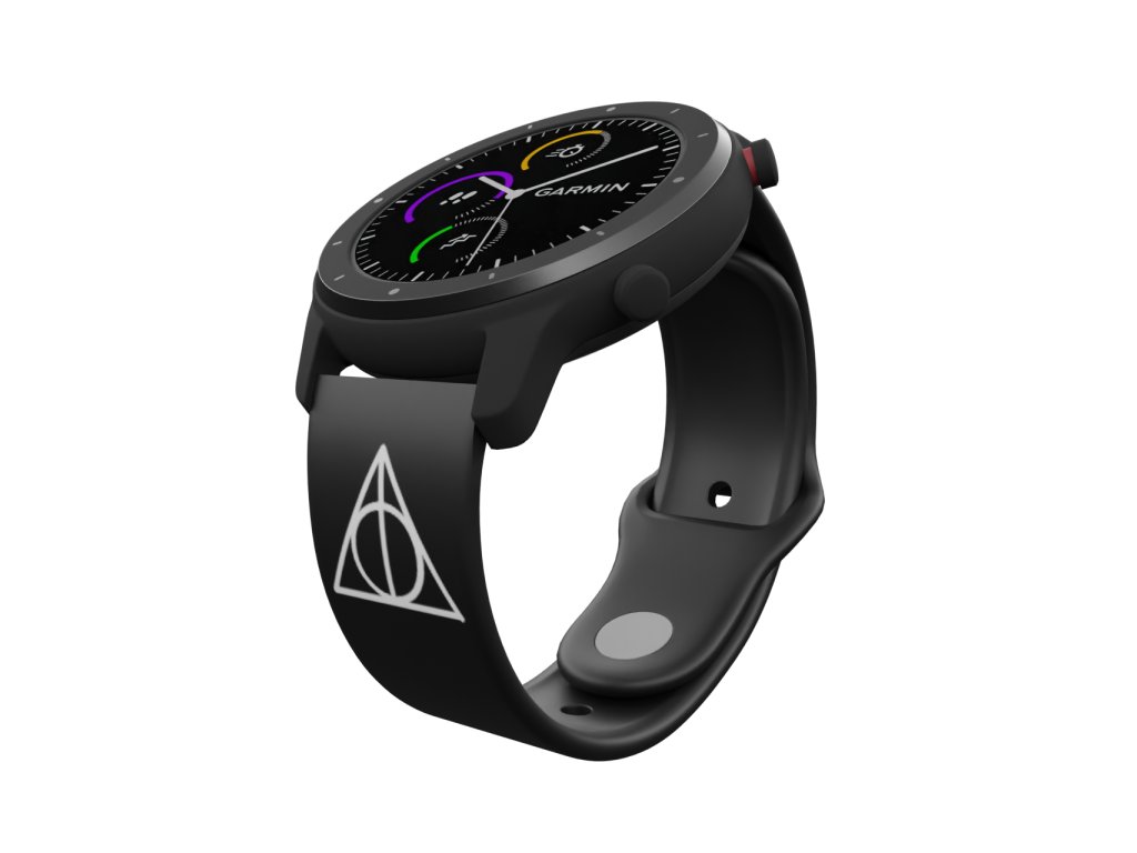 Černý náhradní řemínek s grafikou relikvie smrti. Mějte svůj vlastní symbol těchto