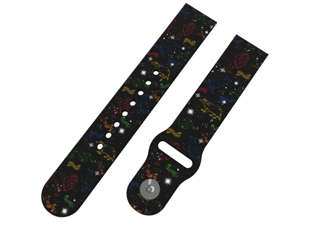 Potištěný univerzální řemínek naší vlastní výroby ve velikosti 22 mm s designem "HARRY POTTER - SOUHVĚZDÍ KOLEJI 2" pro obvod zápěstí 15 - 23 cm.