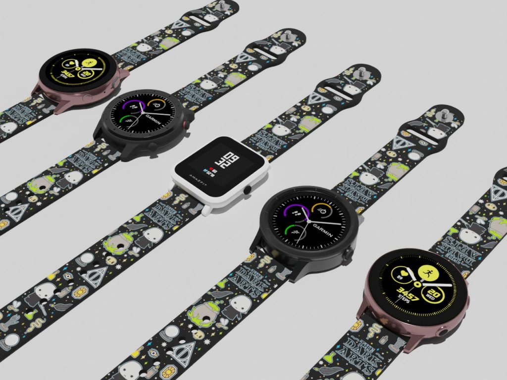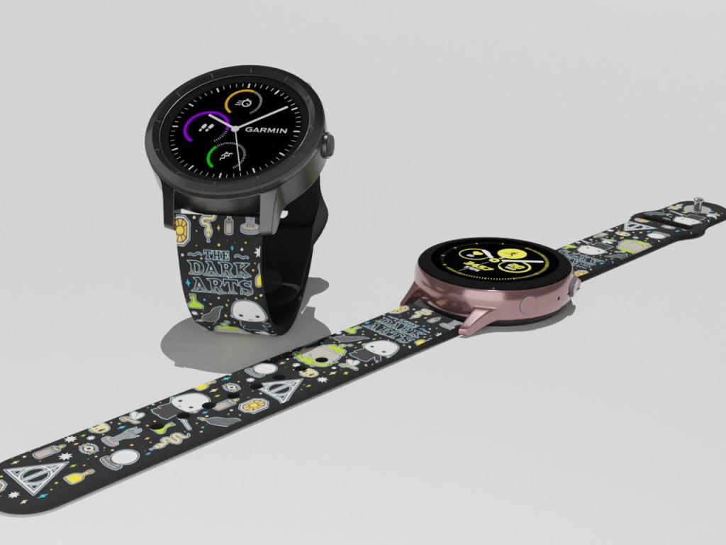 Černý náhradní řemínek pro chytré hodinky s potiskem symbolů temné síly