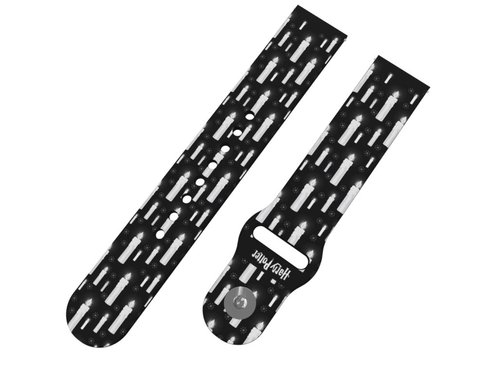 Černý náhradní řemínek pro chytré hodinky s potiskem začarovaného stropu plného svíček z Bradavické školy čar a kouzel. Pohleďte vzhůru.