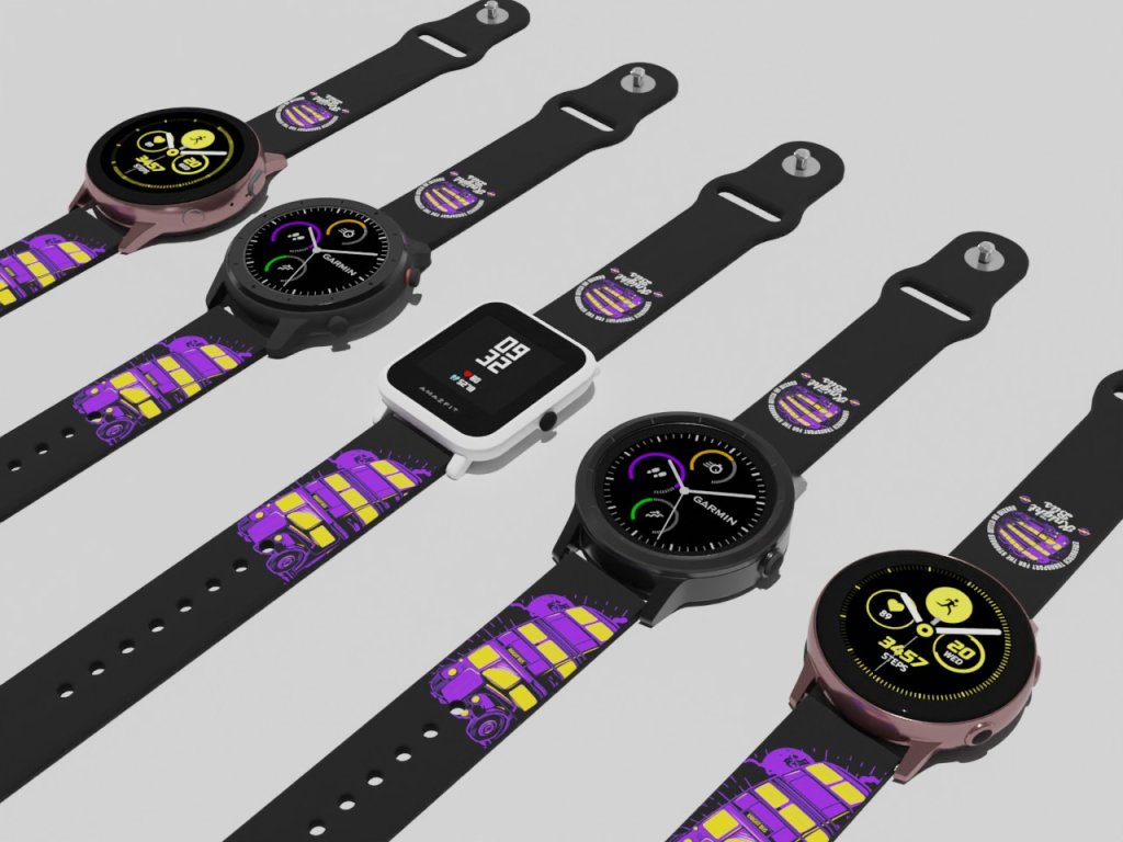 Černý náhradní řemínek pro chytré hodinky s potiskem záchranného autobusu