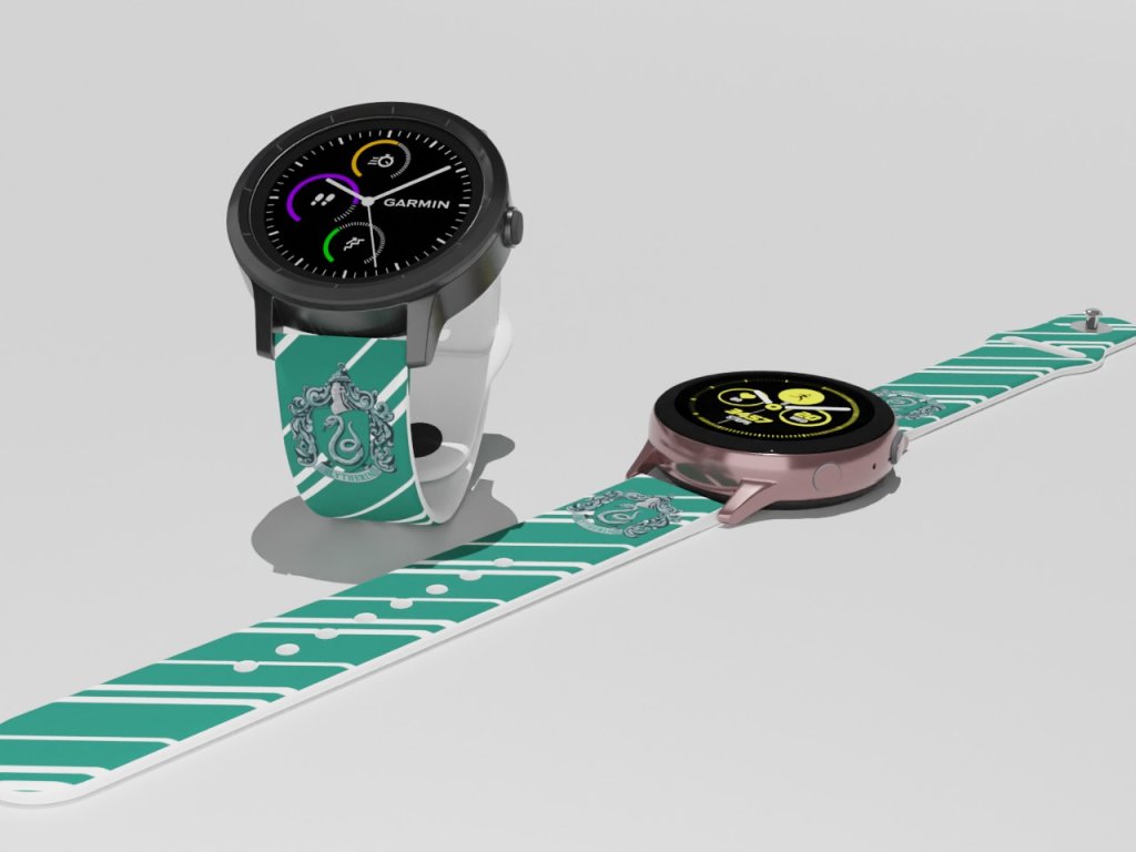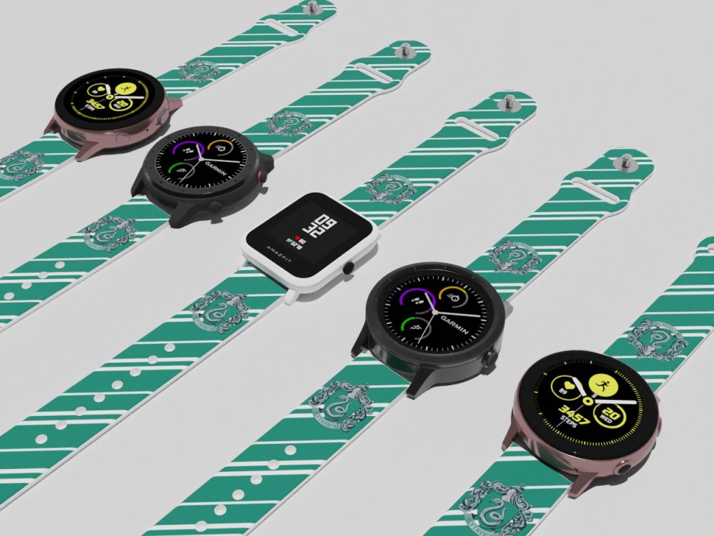 Bílý náhradní řemínek s celoplošným potiskem ve stylu kravaty Zmijozelské koleje.