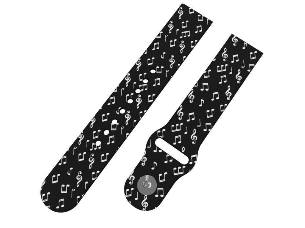 Černý náhradní řemínek pro chytré hodinky s černým potiskem not. To pravé pro skladatele i milovníky hudby. Rozezněte tóny i vás pásek u hodinek.