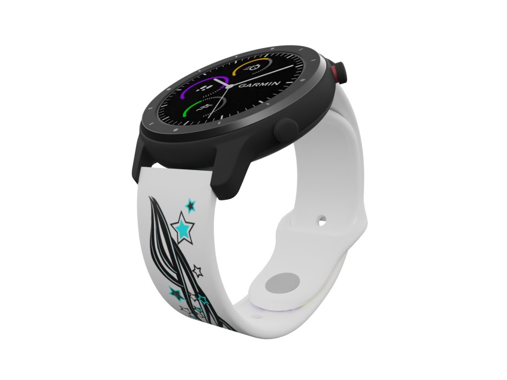 Bílý náhradní řemínek s kupou hvězd. Oblíbená kombinace tribalu a hvězdiček v barevné