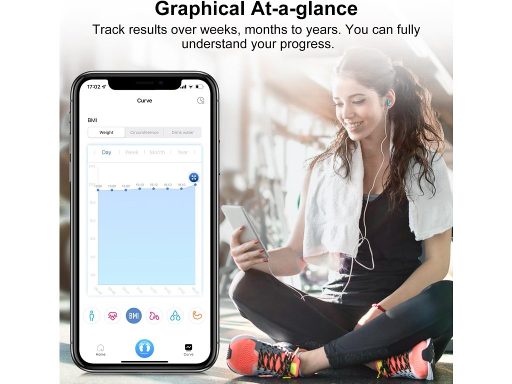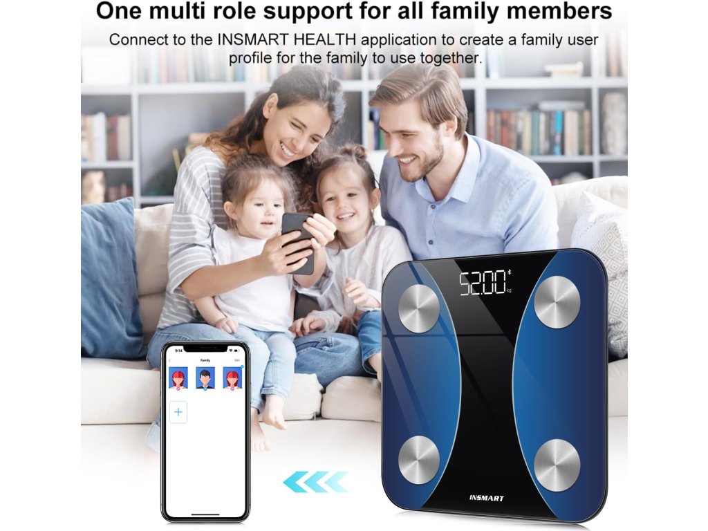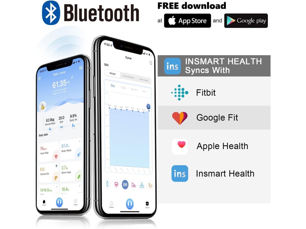 - Kompatibilní a společně použitelné -- Pro chytré telefony s Bluetooth 4.0 a operačním systémem iOS 8.0/ Android 6.0 nebo vyšší. můžete společně s vaší rodinou sdílet hmotnostní stupnici tělesného tuku. Zjištěné údaje v aplikaci Fitdays lze synchronizovat s Fitbit App, Apple Health & Google Fit.