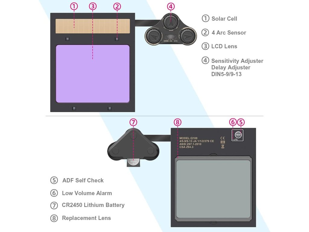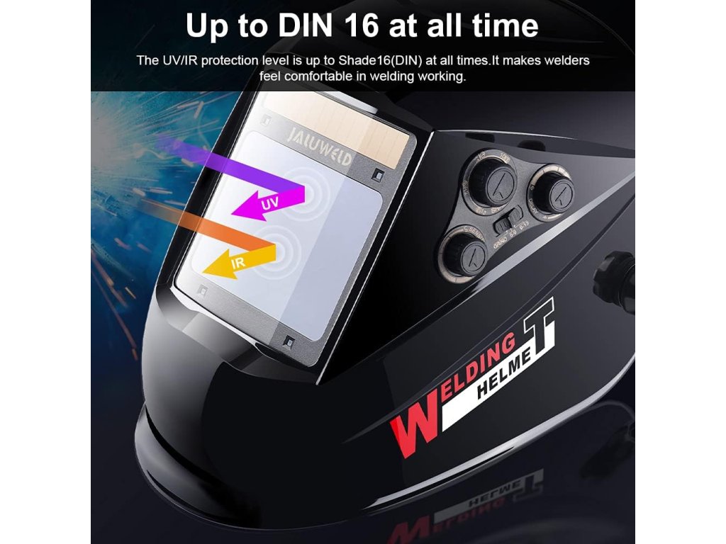 - 【Nastavitelná citlivost a doba zpoždění】Automatické zatemnění funguje pomocí solárních článků s možnostmi nastavení na helmě. Díky rychlým spínacím časům (1/30 000 sek.) Externí otočný knoflík pro nastavení citlivosti; to vše zajišťuje citlivější vnímání a variaci. Ušetříte vám neustálé odstavování masky a pracujete pohodlněji a rychleji.