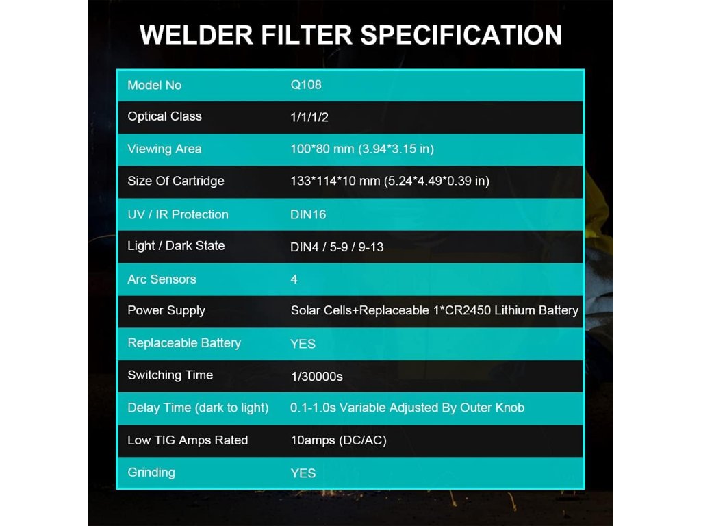 - 【Pro všechny běžné svařovací techniky】Svařovací helma je vhodná pro nejběžnější svařovací techniky, např.: MIG, MAG, WIG nebo svařování elektrickým obloukem a přesvědčí svou optickou třídou 1/1/1/2. Lithiové baterie s integrovaným solárním článkem zvyšují provozní dobu na tři roky