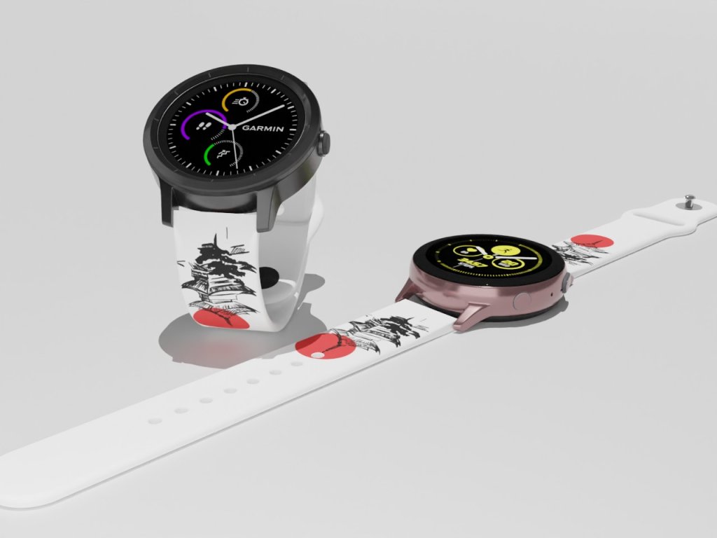 Bílý náhradní řemínek pro chytré hodinky s potiskem typických prvků pro Japonsko.