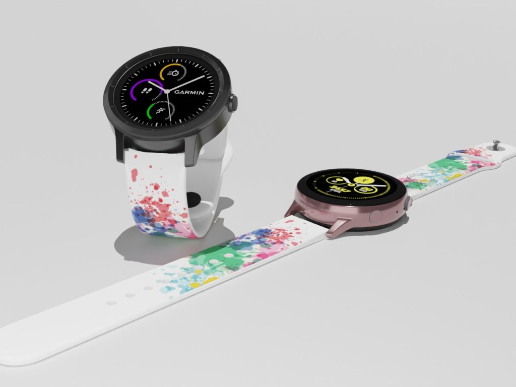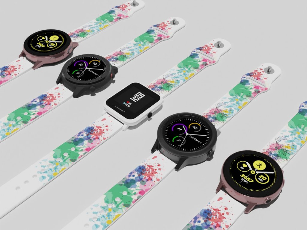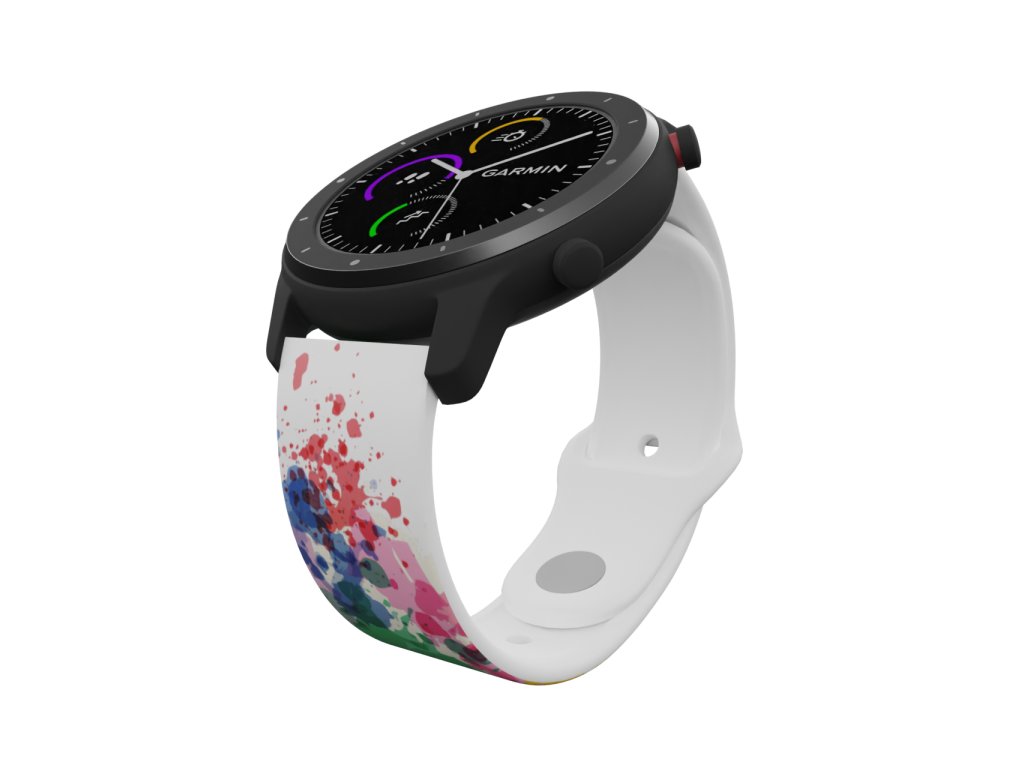 Bílý náhradní řemínek pro chytré hodinky s barevným potiskem abstrakce
