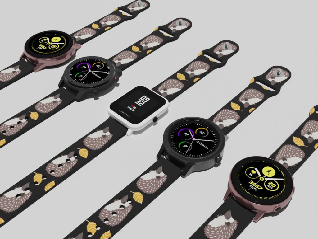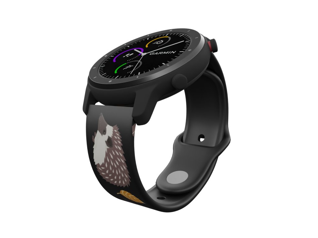Černý náhradní řemínek pro chytré hodinky s potiskem roztomilých ježečků.