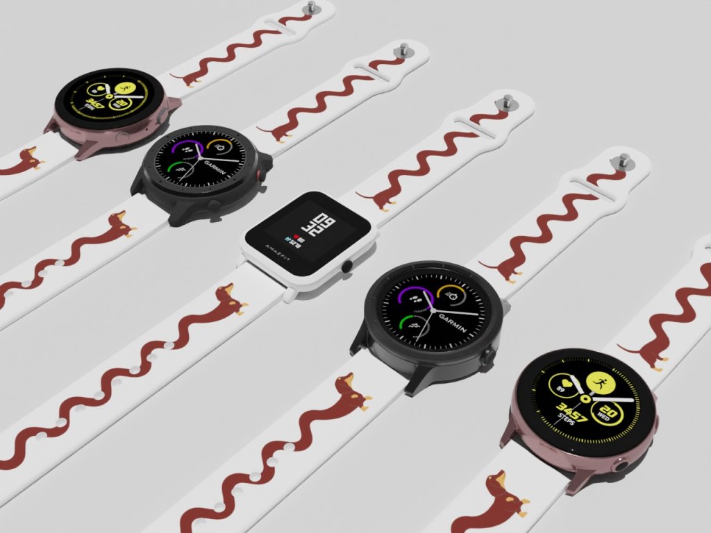 Bílý náhradní řemínek pro chytré hodinky s potiskem dlooouhého jezevčíka