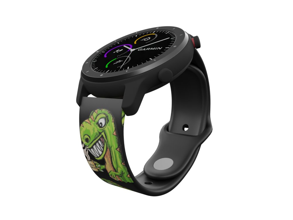 Potištěný univerzální řemínek naší vlastní výroby ve velikosti 22 mm s designem "KAVOSAURUS"pro obvod zápěstí 15 - 23 cm.