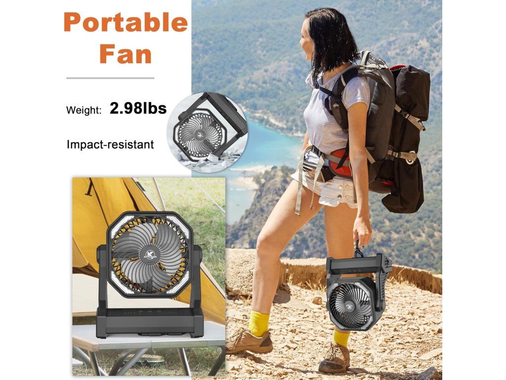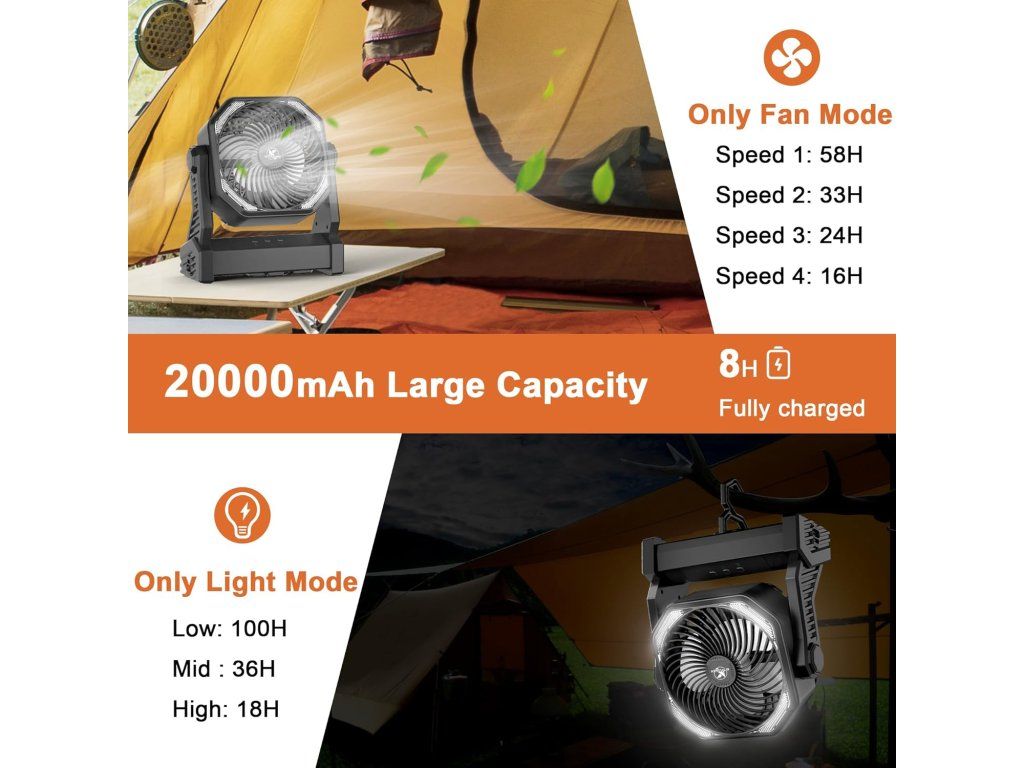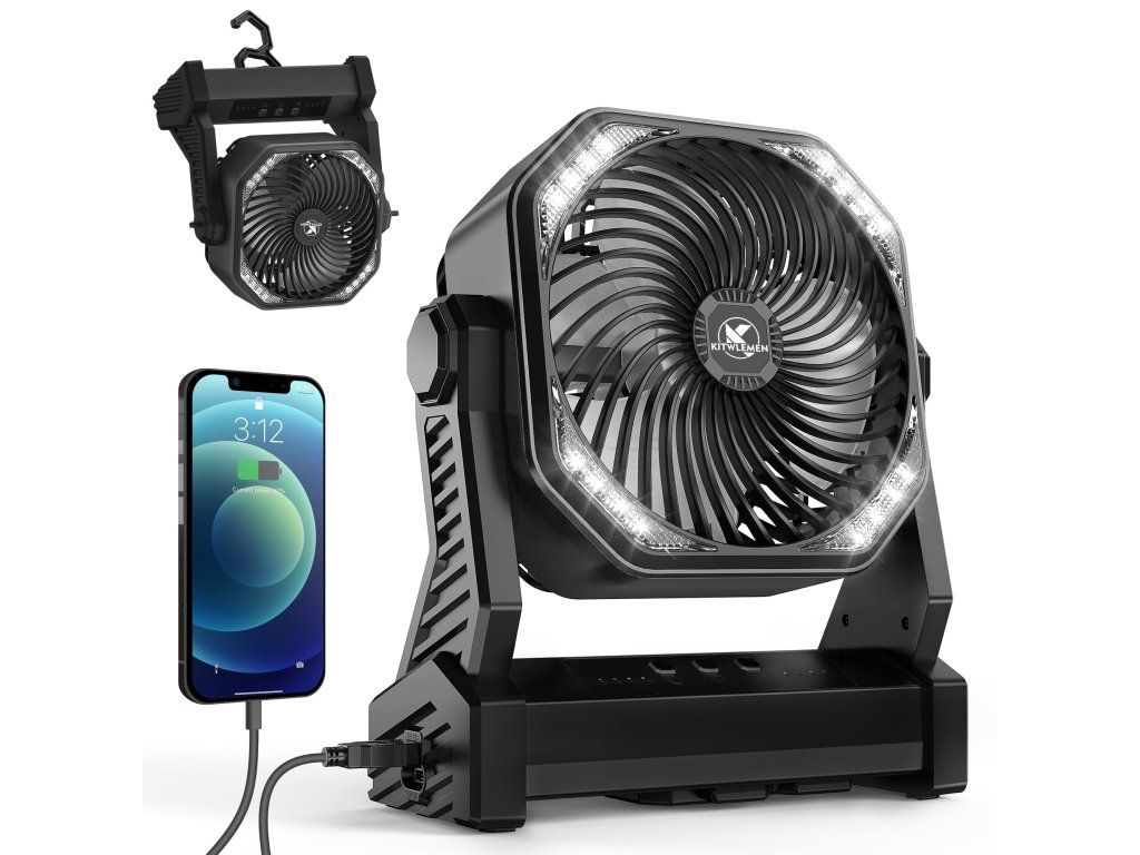 KITWLEMEN – Kempingový ventilátor 20 000 mAh (nastavitelný, přenosný)