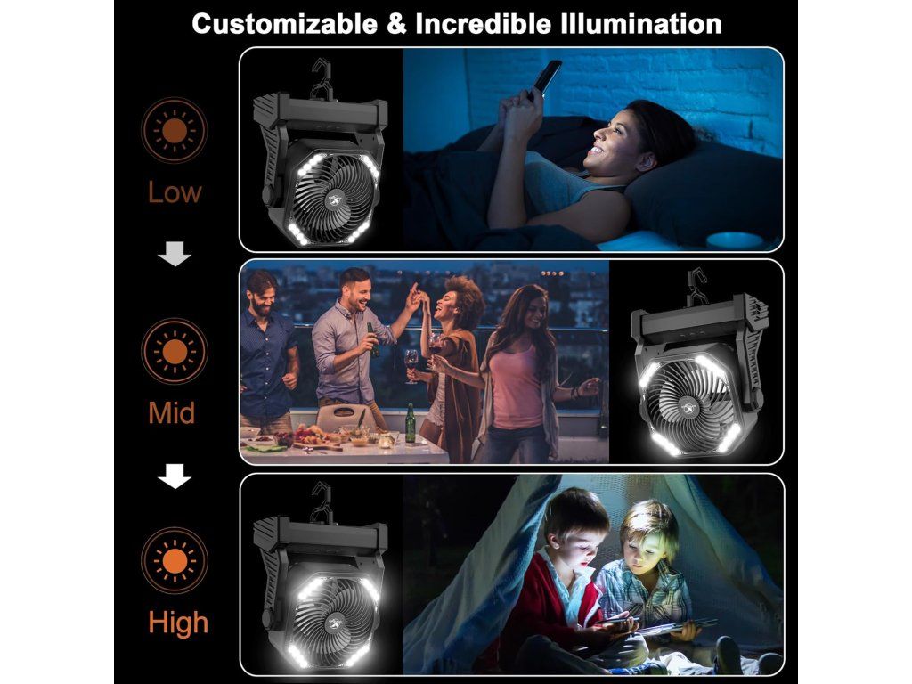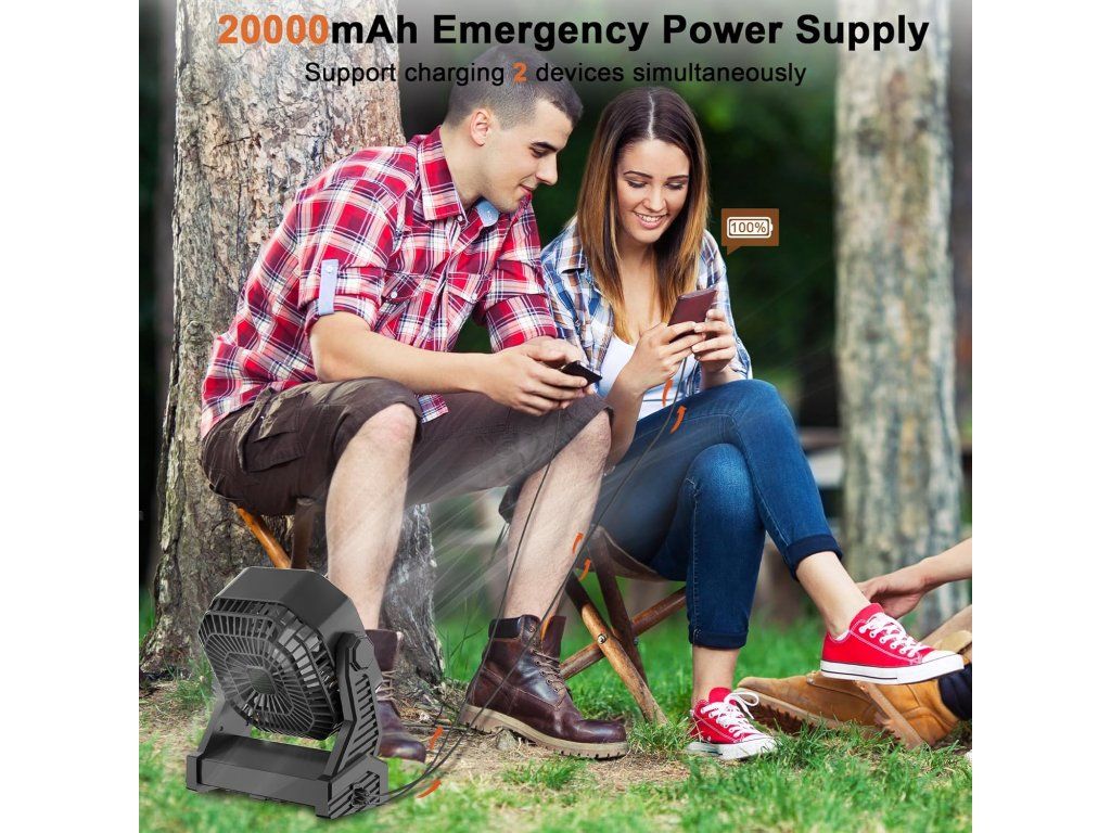 KITWLEMEN kempingový ventilátor je výkonné a univerzální zařízení ideální pro outdoor aktivity, cestování i nouzové situace. Díky vysokokapacitní baterii 20 000 mAh poskytuje dlouhou výdrž a spolehlivé ochlazení kdekoliv.