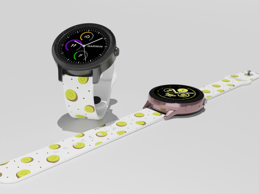 Bílý náhradní řemínek pro chytré hodinky s potiskem malých kiwi.