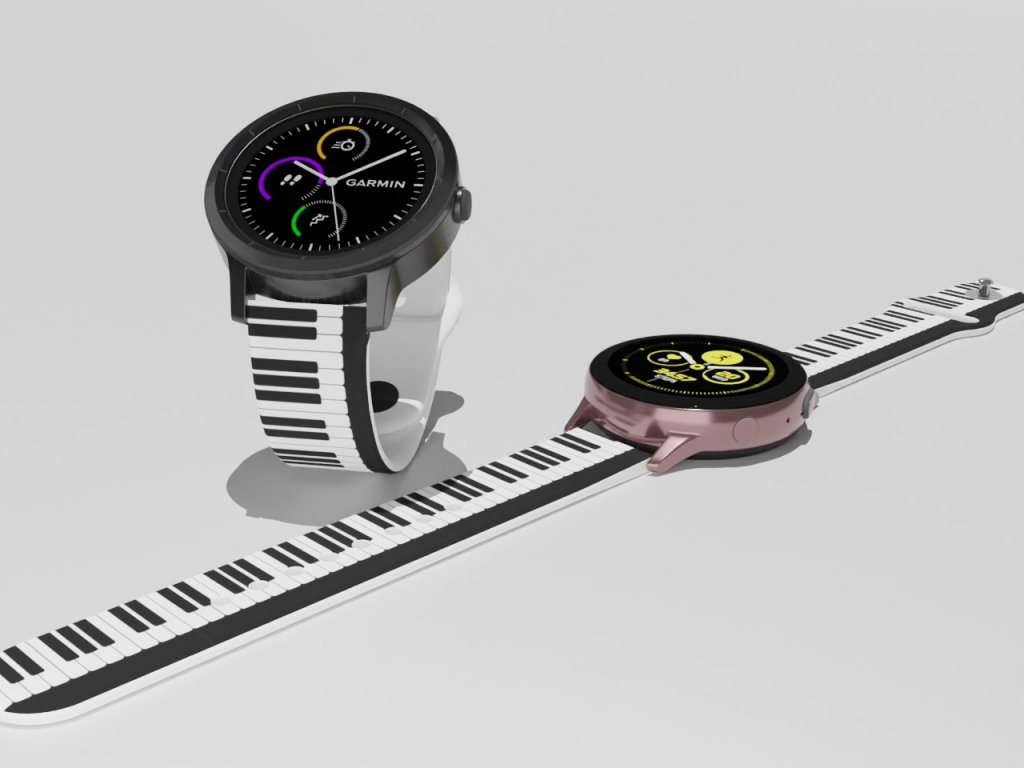 Bílý náhradní řemínek pro chytré hodinky s potiskem klaviatury.