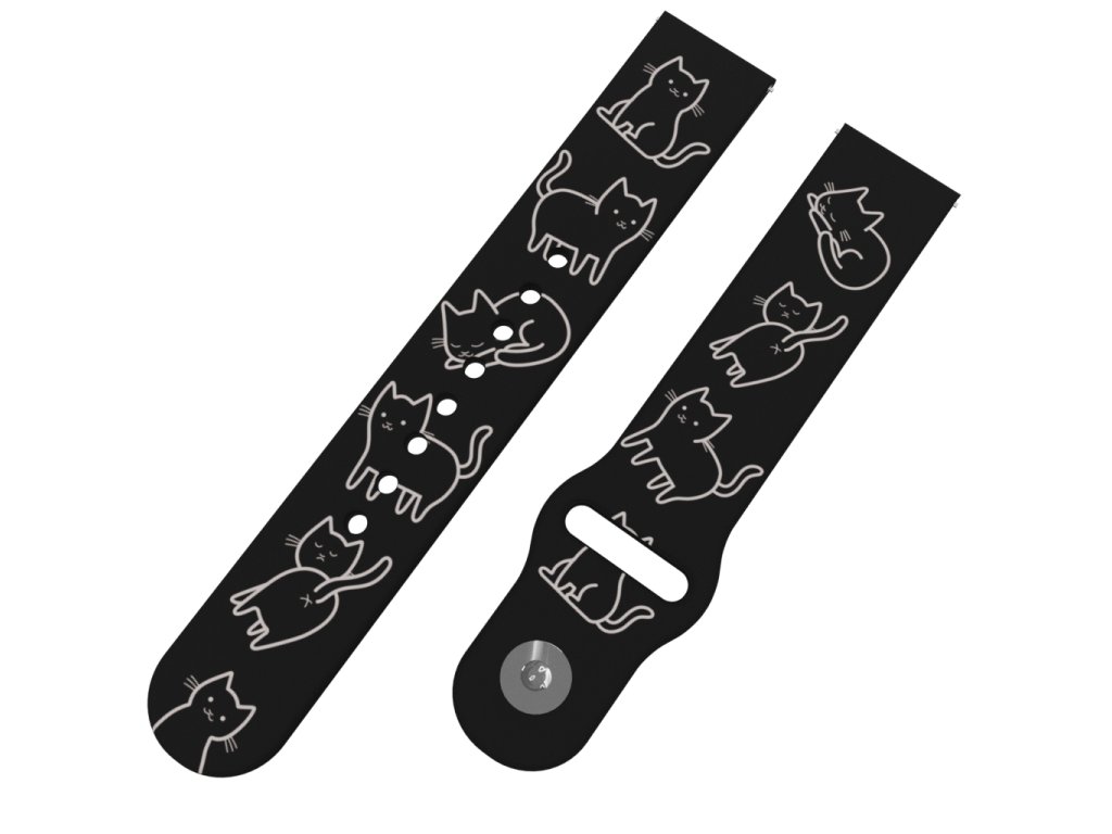 Černý řemínek s bílými obrysy koček. Jste kočkomil? Pak jste tu správně.