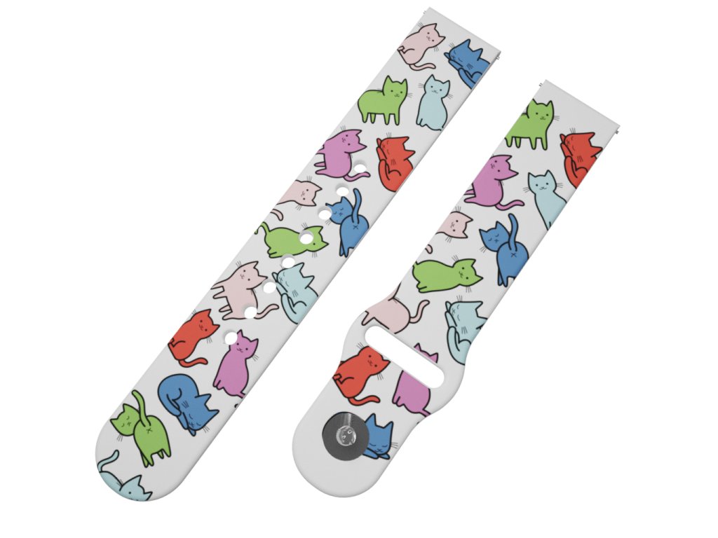 Bílý náhradní řemínek pro chytré hodinky s potiskem barevných kočiček.