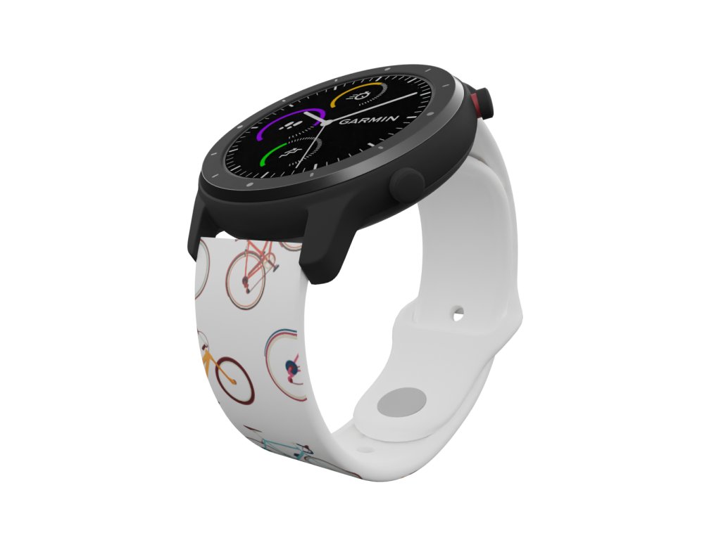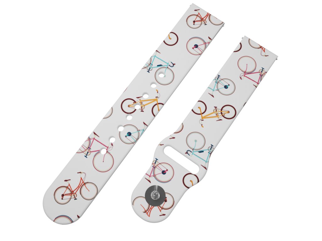 Bílý náhradní řemínek pro chytré hodinky s barevným potiskem jízdných kol.