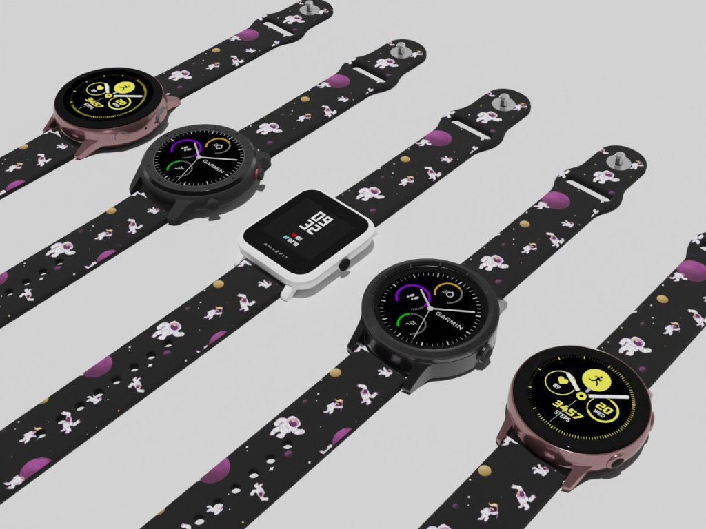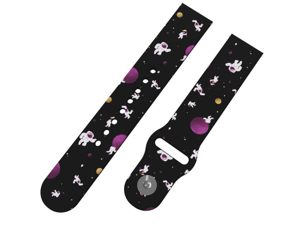 Černý náhradní řemínek pro chytré hodinky s potiskem kosmonautů ve vesmíru. Kousek vesmíru pro každý pásek k hodinkám.