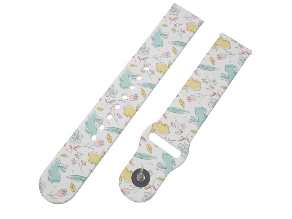 Bílý náhradní řemínek pro chytré hodinky s potiskem prvků Velikonoc v jarních pastelových barvách. Hody, hody, doprovody...velikonoční jemný pásek pro vaše chytré hodinky.