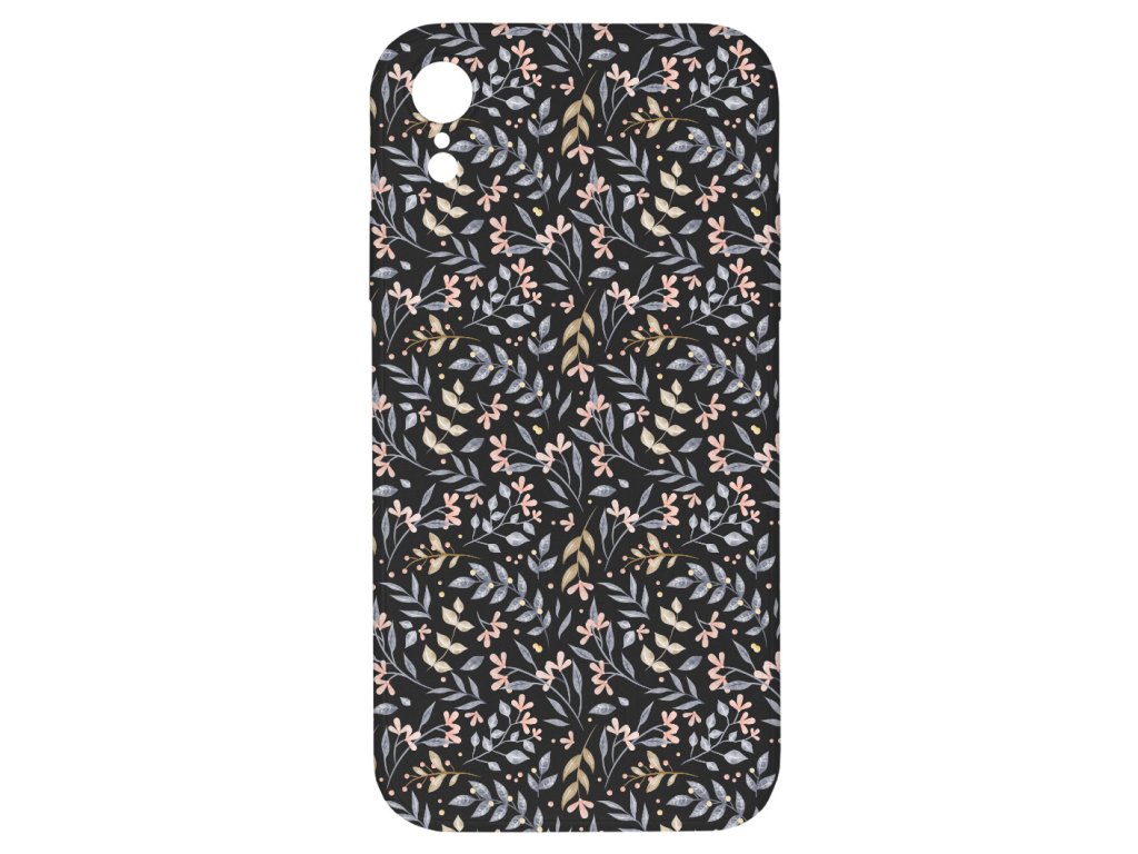 Kryt na chytrý telefon iPhone XR s motivem potisku Kytky černý