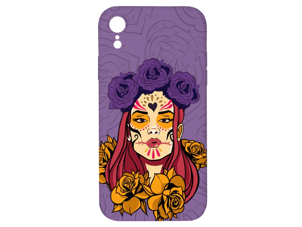 Kryt na chytrý telefon iPhone XR s motivem potisku Lebka s květy 2
