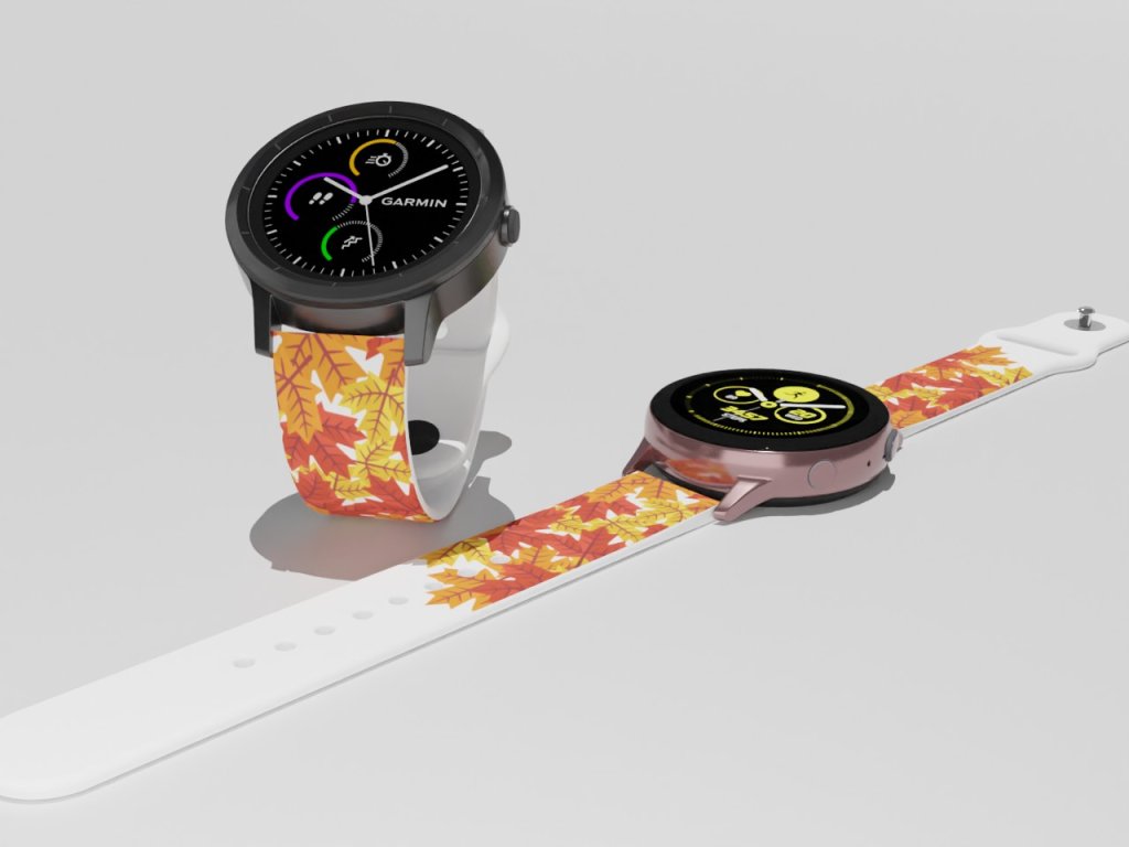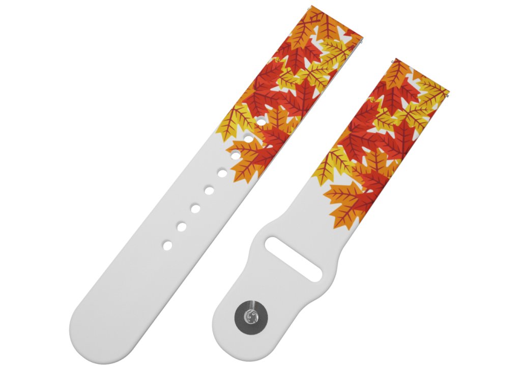 Bílý náhradní řemínek pro chytré hodinky s potiskem podzimního listí.