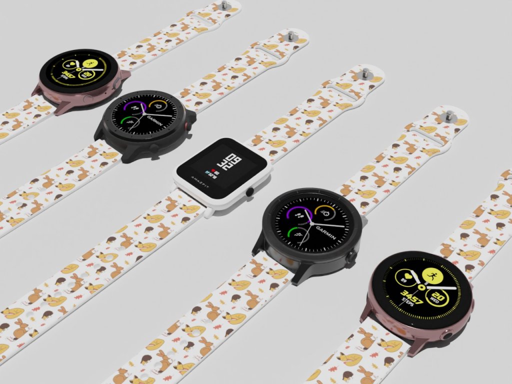 Bílý náhradní řemínek pro chytré hodinky s potiskem bílých lesních zvířátek. Pozvěte si domů lišku, zajíčka nebo ježka i s podzimním listím.