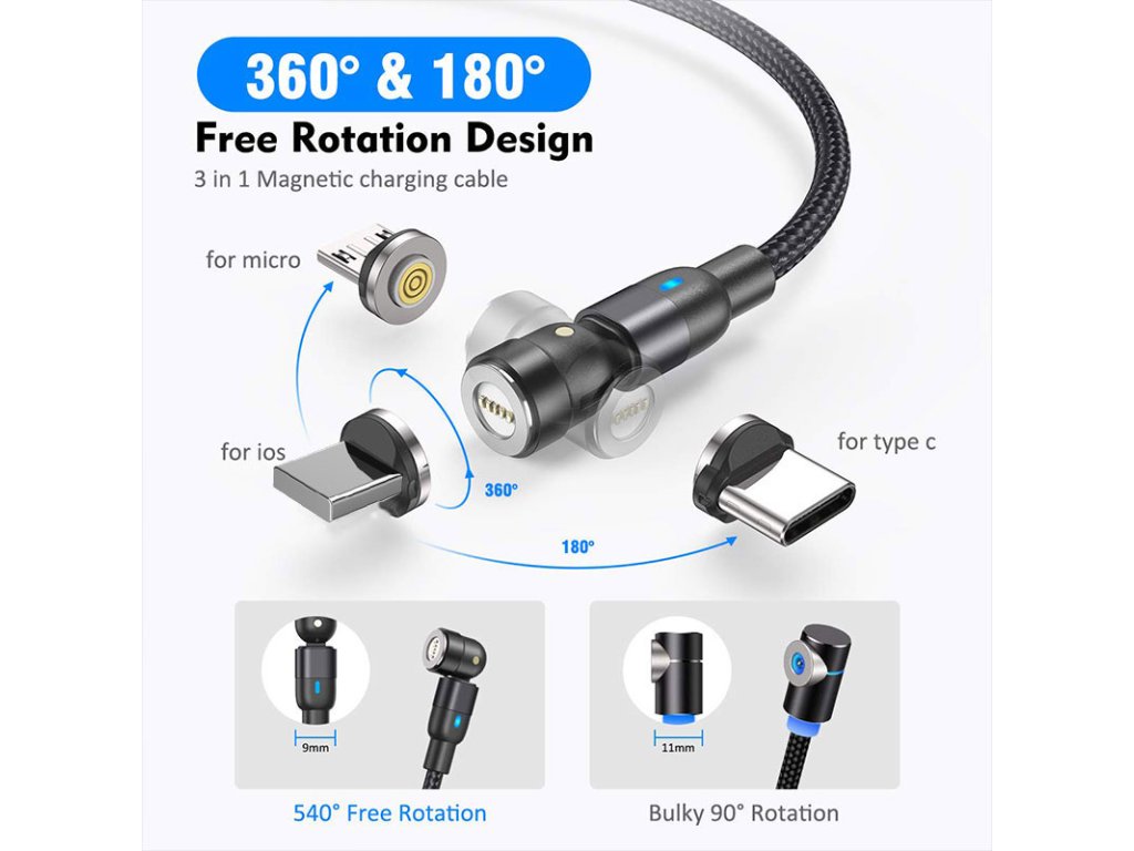 Magnetický nabíjecí kabel 3v1 je univerzální řešení pro efektivní a pohodlné nabíjení různých zařízení. S jeho pomocí můžete jednoduše a rychle dobíjet zařízení s konektory USB-C, Lightning a Micro USB. Díky magnetickému mechanismu je připojení snadné a bezpečné, eliminuje riziko poškození portu a usnadňuje manipulaci s kabelem. Ideální pro vlastníky různých typů zařízení.