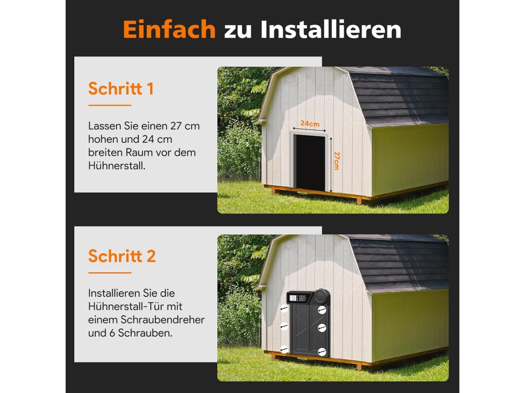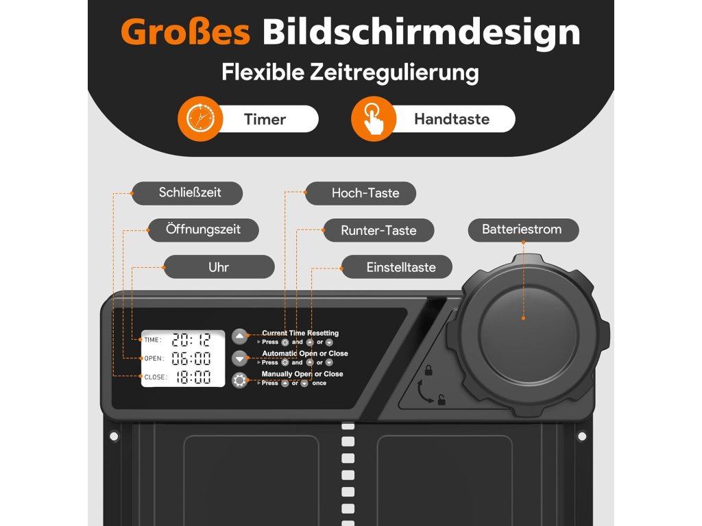 - Uživatelsky příjemné rozhraní pro všechny věkové skupiny: Kuřecí klapka automaticky s velkým, intuitivním displejem, toto zařízení se velmi snadno ovládá. Ať už technický nebo technický začátečník, byl vyvinut tak, aby vyhovoval uživatelům všech věkových skupin a zajistil, že jej mohou bez námahy ovládat i starší uživatelé.