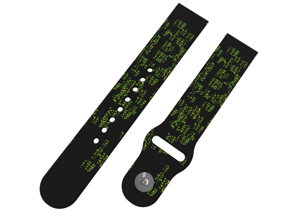 Potištěný univerzální řemínek naší vlastní výroby ve velikosti 22 mm s designem "MATRIX BITCOIN" pro obvod zápěstí 15 - 23 cm.