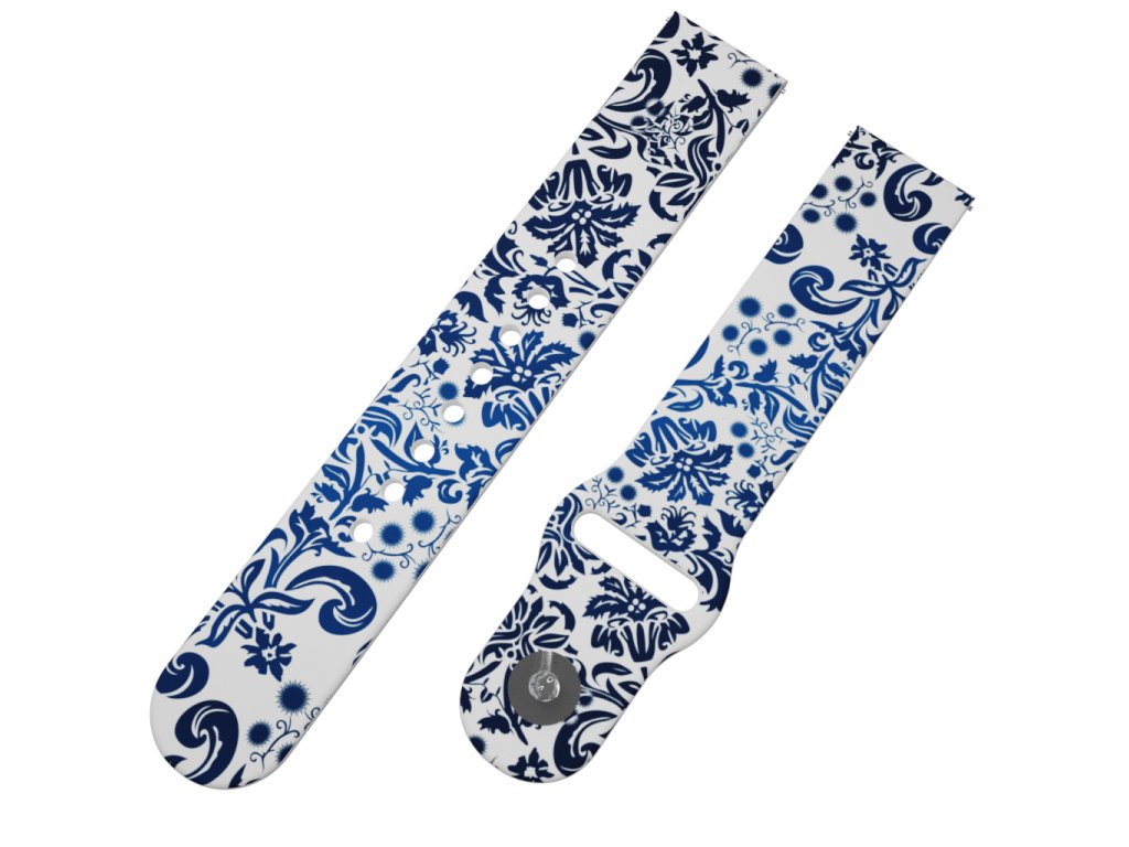 Bílý náhradní řemínek pro chytré hodinky s potiskem modrých květin.