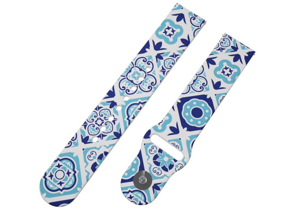 Bílý náhradní řemínek pro chytré hodinky s potiskem v designu modrého porcelánu.