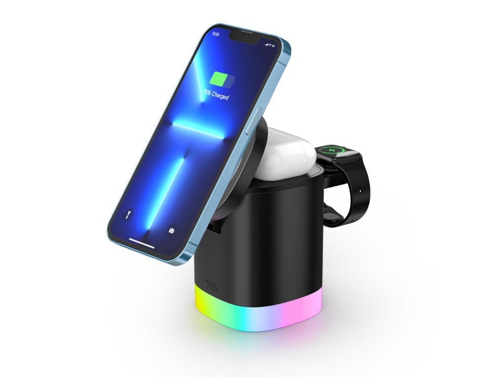 › Chytré hodinky / mobily / tablety / příslušenství › Ostatní příslušenství › Nabíjecí stanice 3v1 s osvětlením