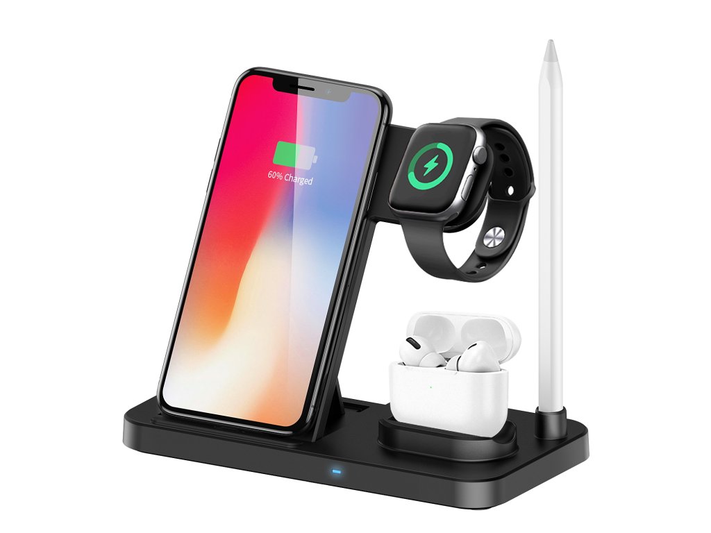 Nabíjecí stanice 4v1 pro mobilní telefony, hodinky Apple Watch, AirPods a Apple pencil.