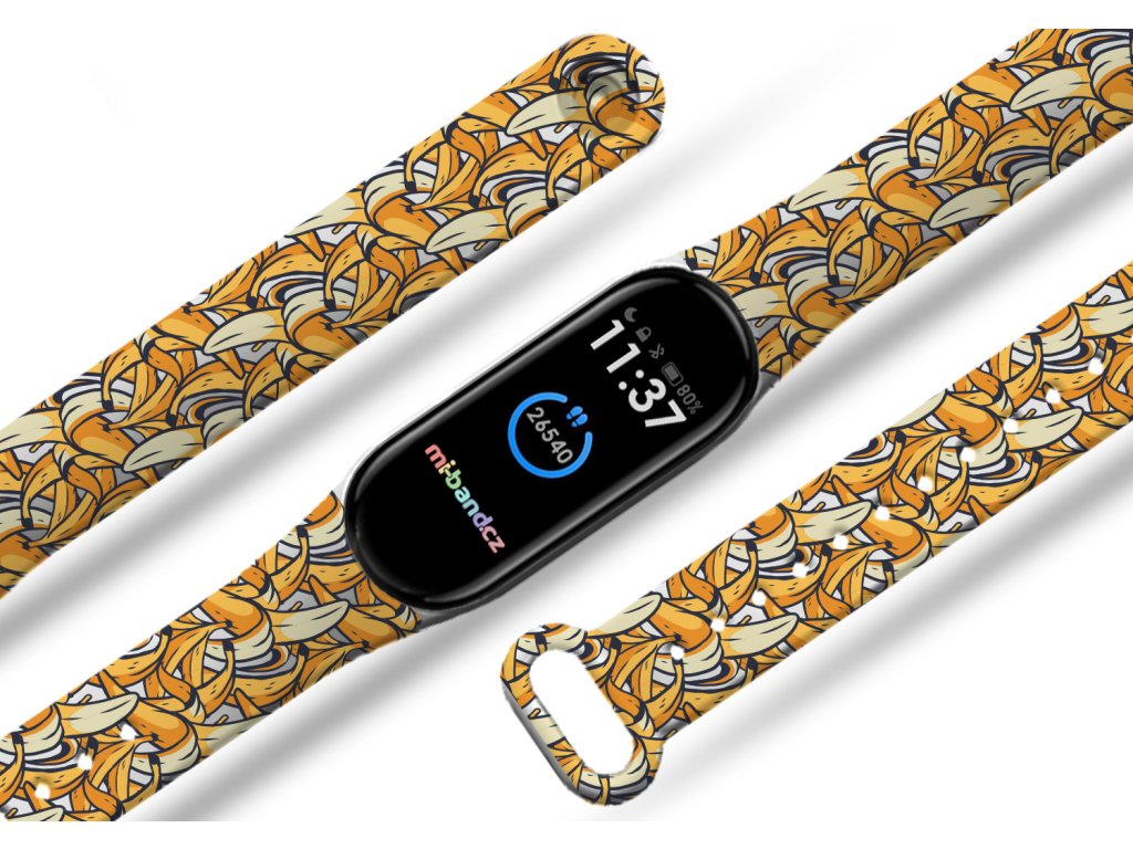 Díky vlastní výrobě i tiskům máme buď skladem nebo vyrobíme a expedujeme obratem. Řemínky pro vás pečlivě a s láskou zabalíme.  Náhradní náramek Mi band 3/4/5/6/7 Banány