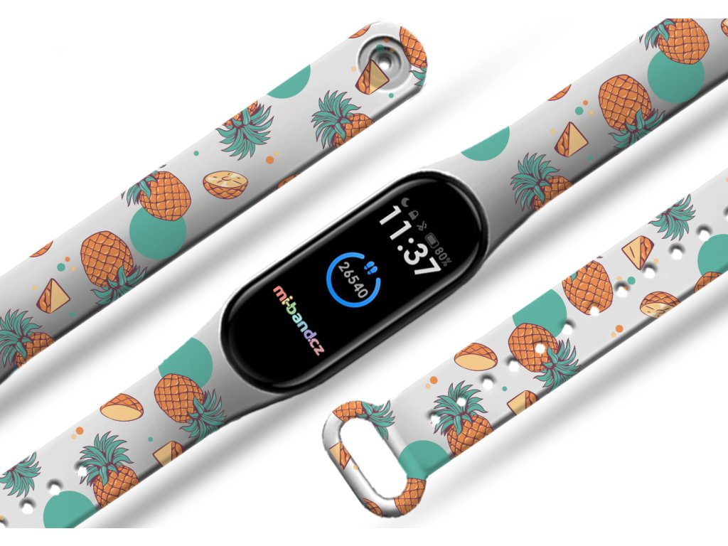 Řemínky pro vás vyrábíme v Ústí nad Labem. Od namíchání barev, přes výrobu samotného řemínku až po finální potisk, který lze i na přání. Náhradní náramek Mi band 3/4/5/6/7 Ananas