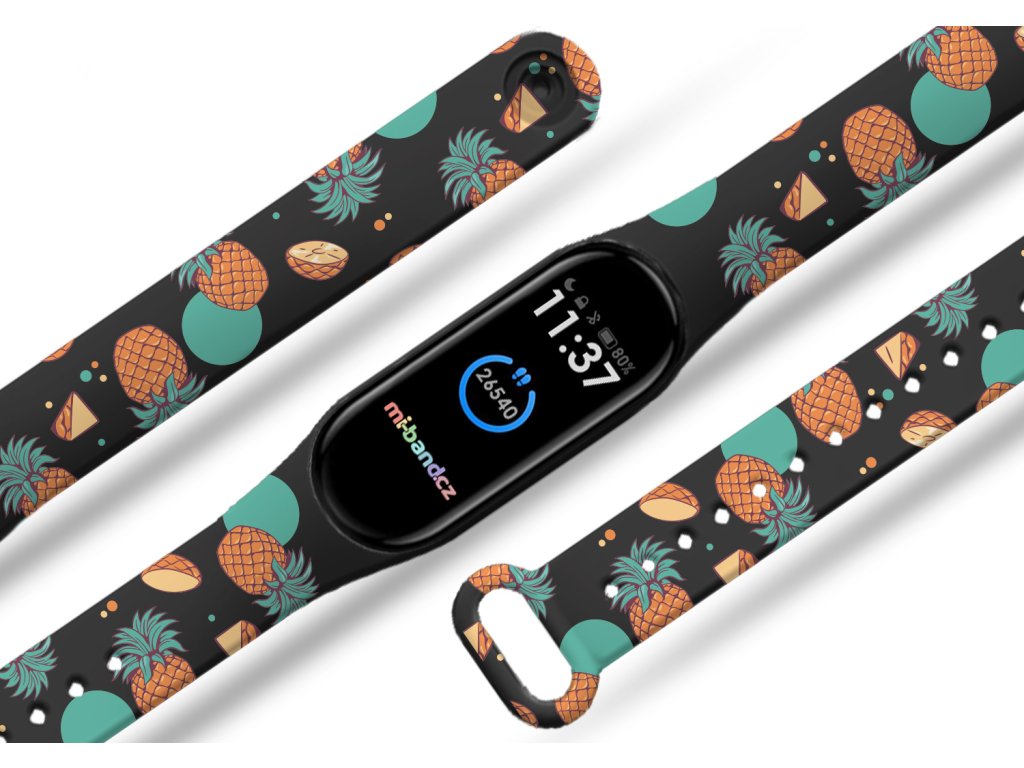 Díky vlastní výrobě i tiskům máme buď skladem nebo vyrobíme a expedujeme obratem. Řemínky pro vás pečlivě a s láskou zabalíme.  Náhradní náramek Mi band 3/4/5/6/7 Ananas