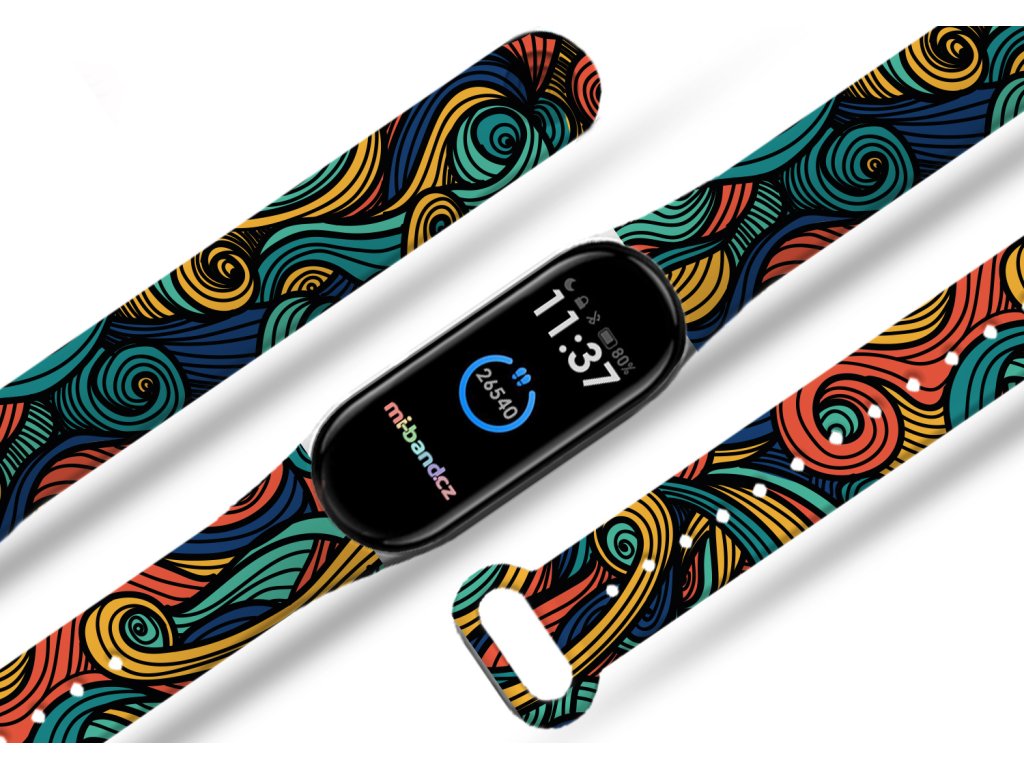 Díky vlastní výrobě i tiskům máme buď skladem nebo vyrobíme a expedujeme obratem. Řemínky pro vás pečlivě a s láskou zabalíme.  Náhradní náramek Mi band 3/4/5/6/7 Barevné vlny
