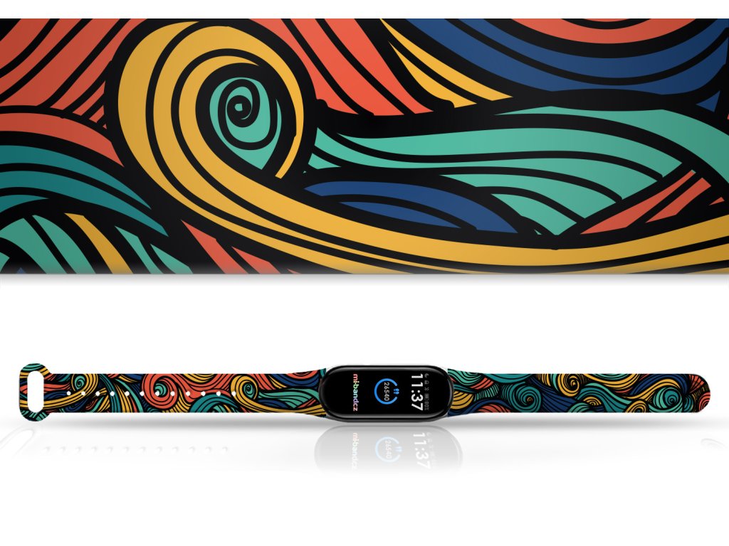 Řemínky pro vás vyrábíme v Ústí nad Labem. Od namíchání barev, přes výrobu samotného řemínku až po finální potisk, který lze i na přání. Náhradní náramek Mi band 3/4/5/6/7 Barevné vlny